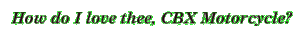 | "IN MAY 1979 WHEN I TOOK A NEW CBX OUT FOR A TEST DRIVE.IT WAS SO SMOOTH AND FAST I BOUGHT IT FAST." |